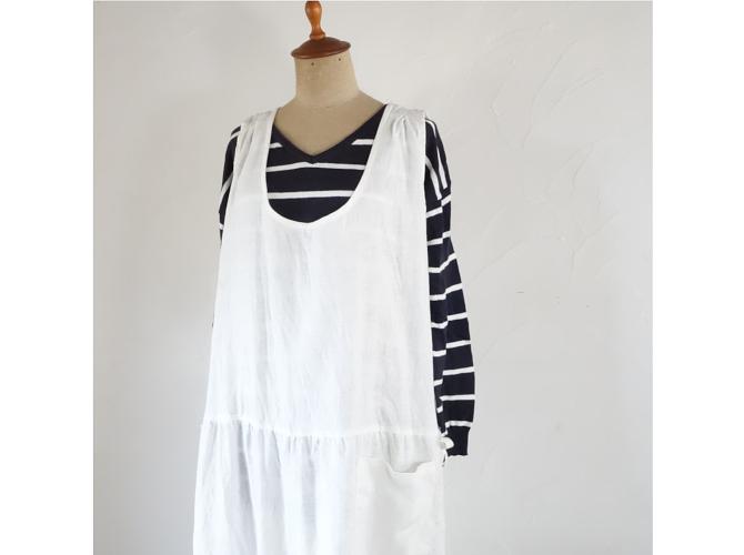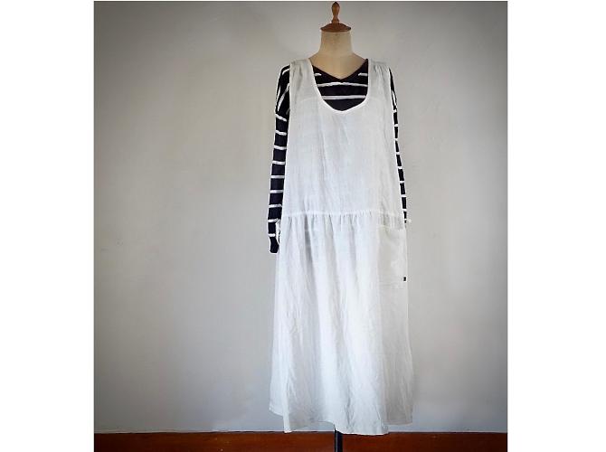 キレイなオフ白のリネンで作った両サイド開きのワンピースです。