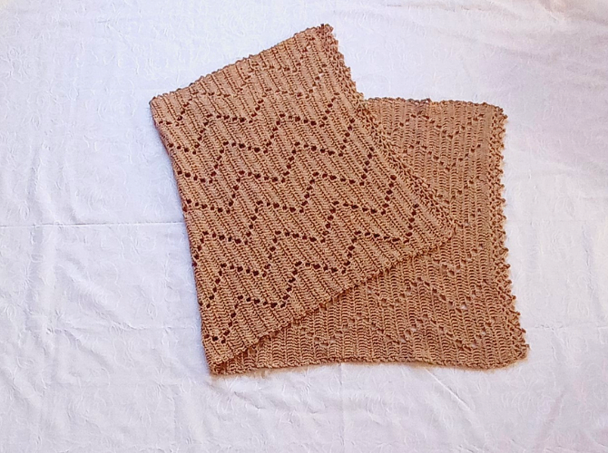デザインはシンプルですが、縁を飾り編みすることで、華やかさをプラスしました。
