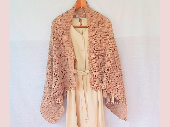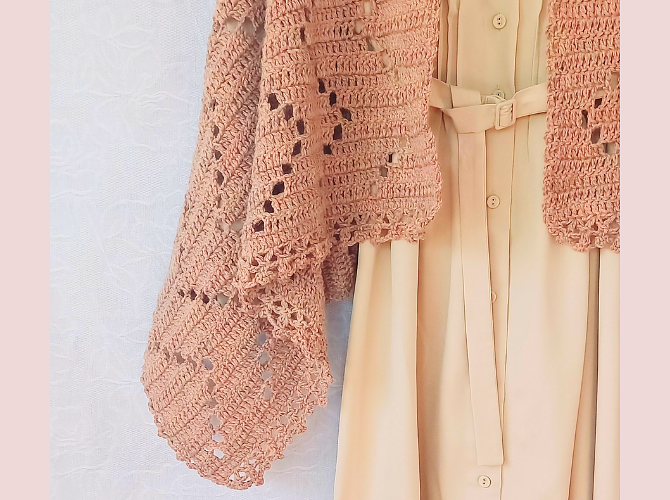 コーラルピンクの大判ストール by 編み物作家haru