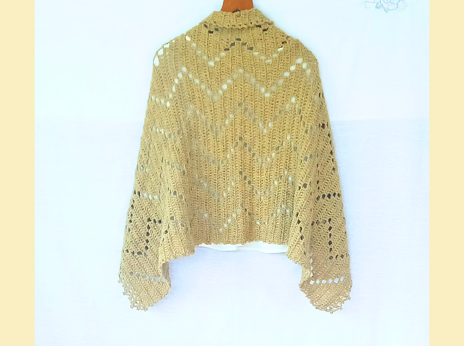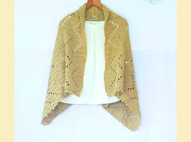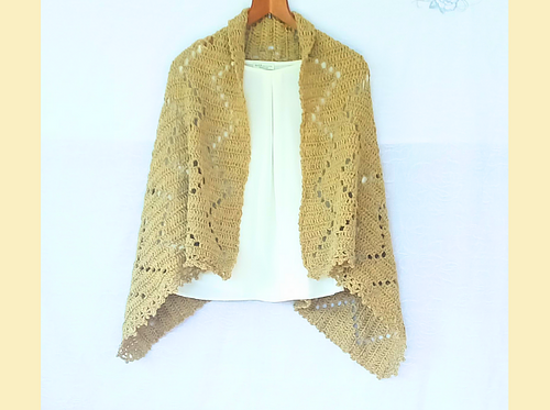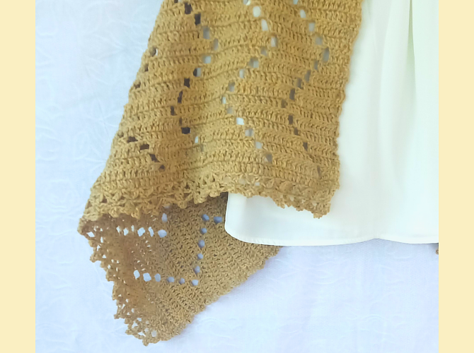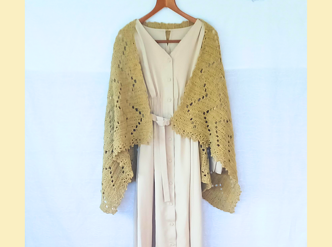 春先、夏の冷房対策、秋冬はもちろん「年中使えたらいいな」をウール混の毛糸で編みました。