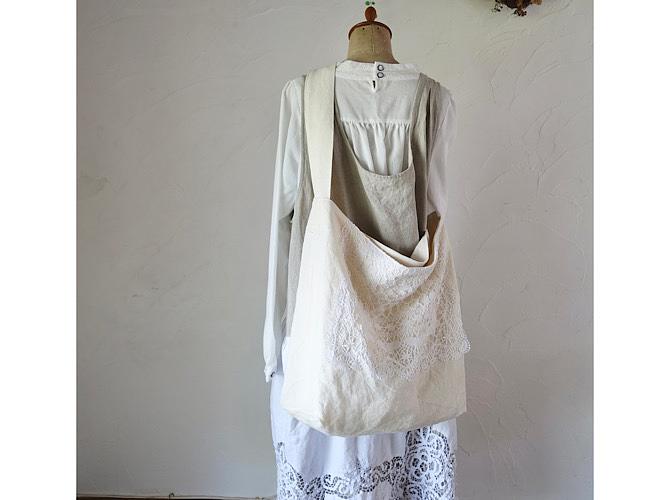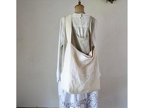 ボビンレースの大きめリネンショルダーバッグ by Ray de lumière