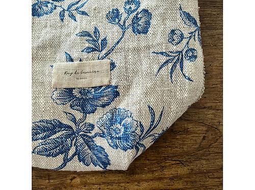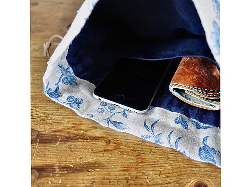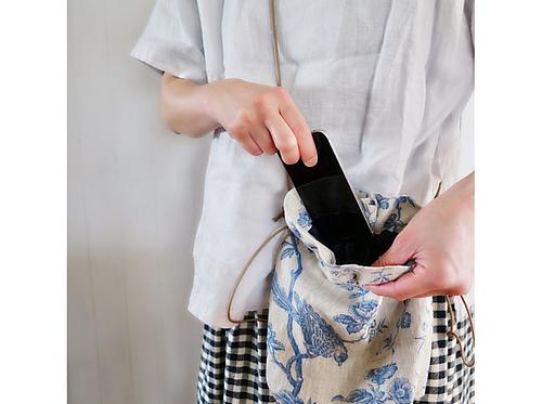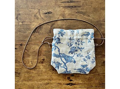 アンティーク風柄リネンの巾着ポシェット