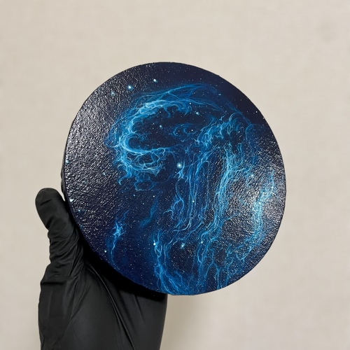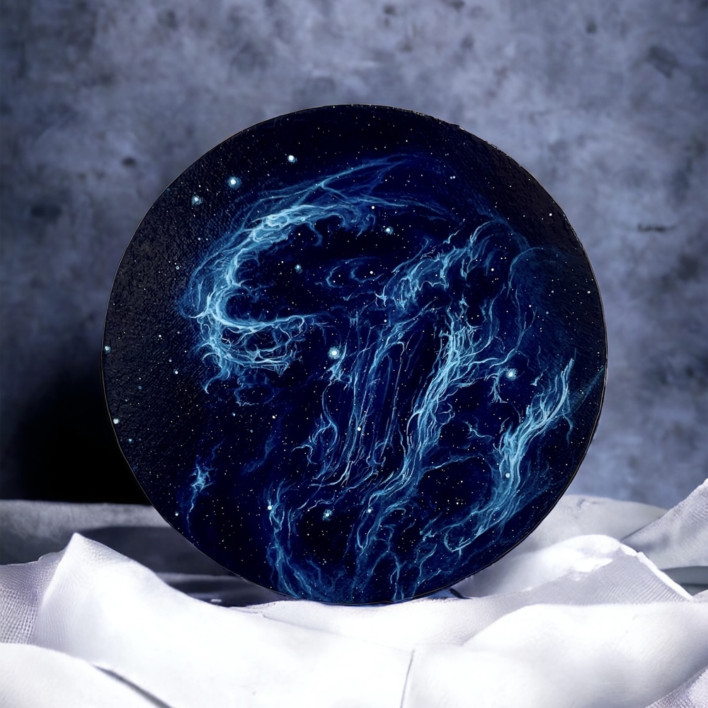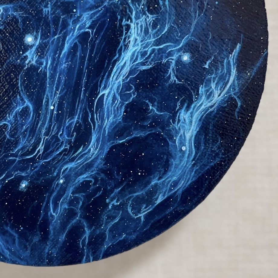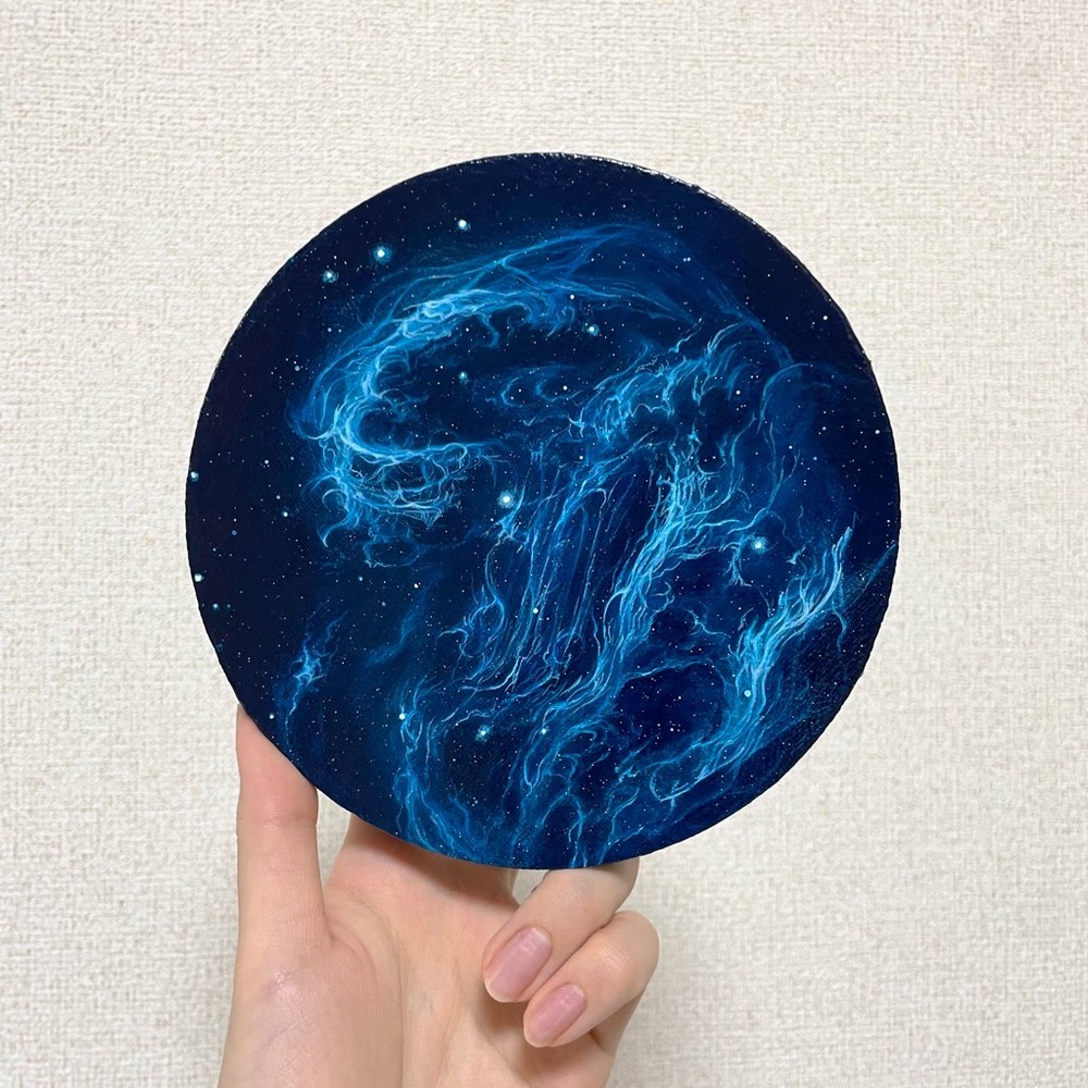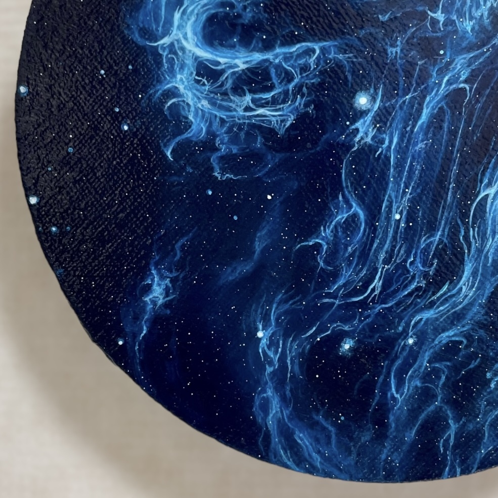 深い青色に鮮やかな網状の星雲が浮かんでいます。
