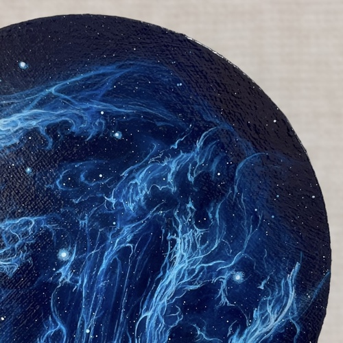 アクリル絵の具でありながら、油絵のような仕上がりを意識しています。