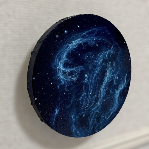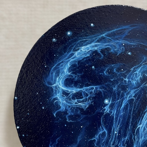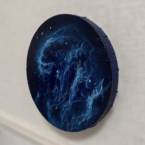 何層にも薄い絵の具を重ね、平面でありながらも深い奥行きを感じられる作品です。